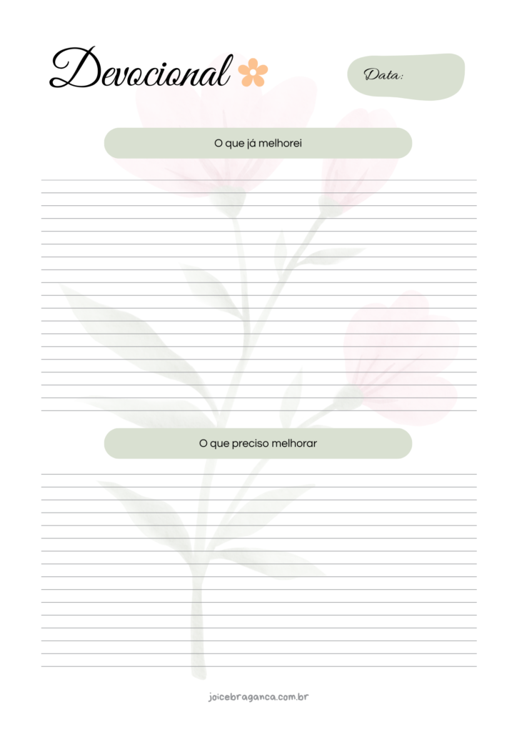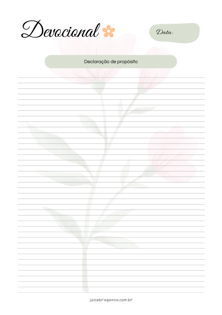 Ao longo destas páginas, você será guiado(a) a aprofundar o relacionamento com Deus e a alinhar cada passo da sua vida com a missão que Ele lhe confiou. Permita que a Palavra e a oração transformem o seu cotidiano em um ato contínuo de adoração.
